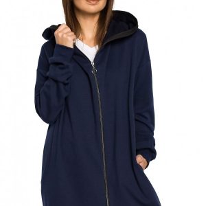 Bluză cu guler din catifea albastră cu fermoar decorativ. Mâneca lungă și partea de jos a bluzei sunt finisate cu o bandă elastică.