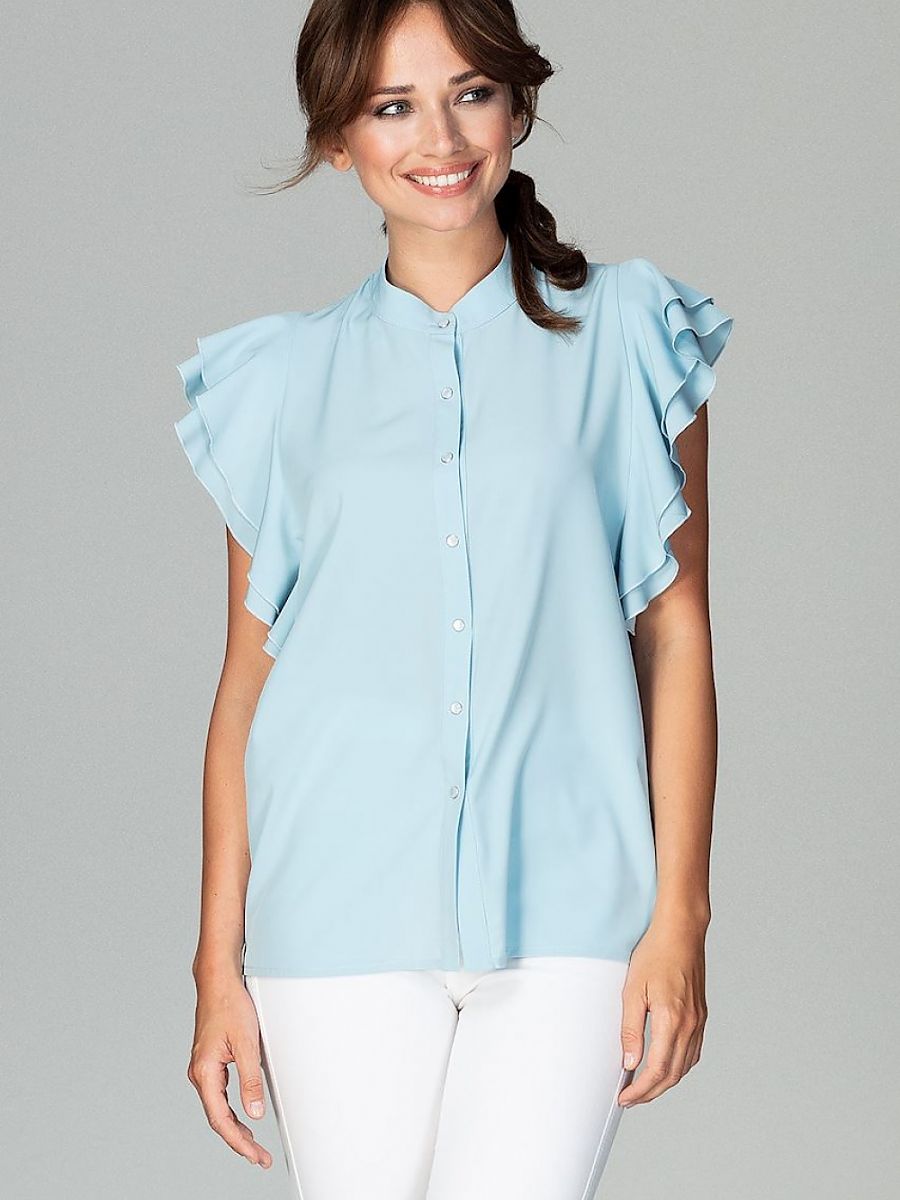 Un clasic atemporal în cea mai bună ediție. Modelul are o croială lejeră, mânecile sunt finisate cu volane și închise cu nasturi decorativi. Cămașa ar trebui să facă parte din garderoba fiecărei femei active din punct de vedere profesional.