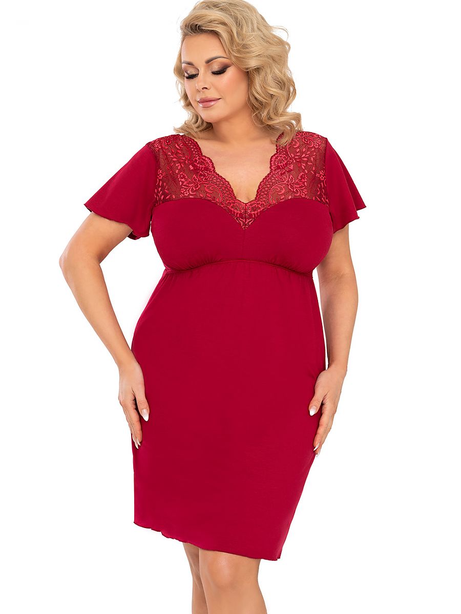 Chemise-ul DORIS PLUS este ca un vin roșu copt care lovește mintea și aprinde simțurile. Mâneci din tul, drapate în forma unui volan delicat. Partea superioară a umerilor și decolteul sunt realizate din dantelă elaborată. Sub bust, țesătura este încrețită cu elastic, ceea ce pune în evidență formele feminine. Mai departe, țesătura curge liber în jurul corpului. Fabricată în Polonia.