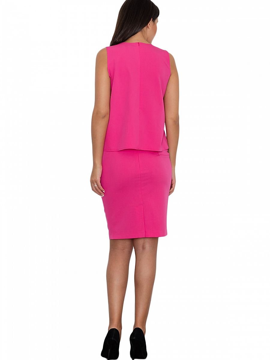 Set elegant într-o versiune simplă. O bluză cu un accent decorativ auriu adaugă șic și modernitate. Fustă ajustată înainte de genunchi cu inserții din piele ecologică, fermoar acoperit. Setul este perfect pentru multe ocazii de zi și de seară.