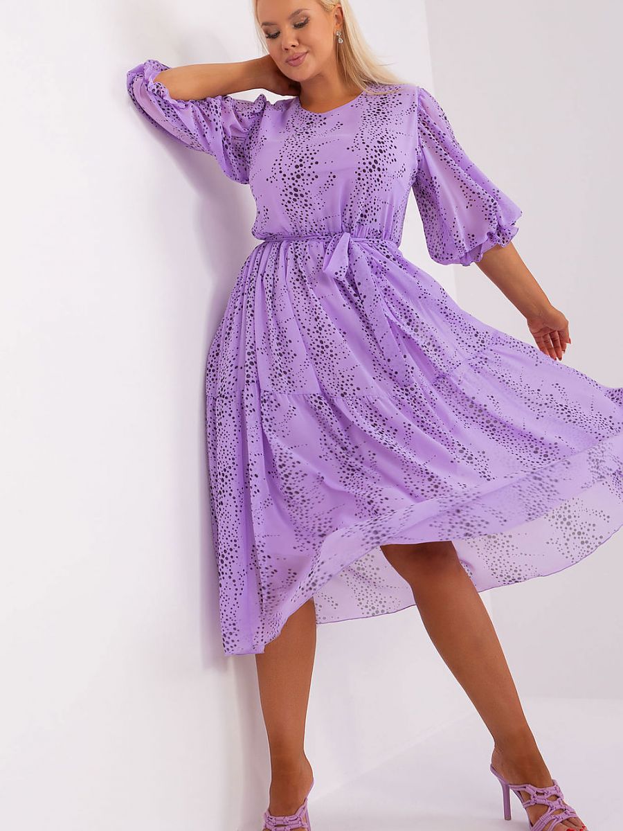 Rochie plus size cu mâneci 3/4 și decolteu rotund. Rochia este căptușită și are o cravată în talie. O propunere ideală pentru multe ocazii.